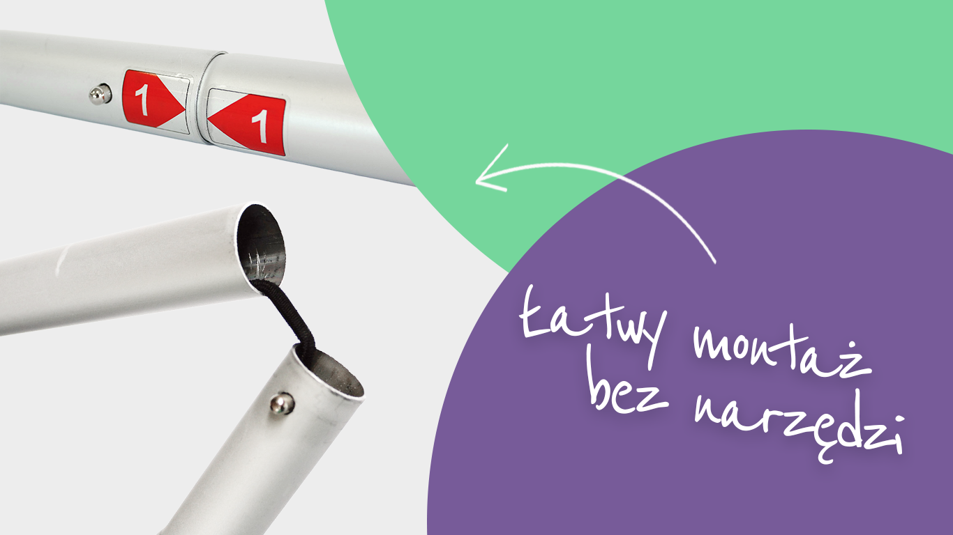 Konstrukcja oparta jest na ponumerowanych aluminiowych rurkach łączonych na wcisk (tak, bez narzędzi – spokojnie). Całość składa się intuicyjnie, trochę jak namiot… tylko bez stresu i bez instrukcji, której nikt nie czyta. Po złożeniu dostajesz stabilną, lekką ściankę, gotową na wszystko – od targów po prezentacje.